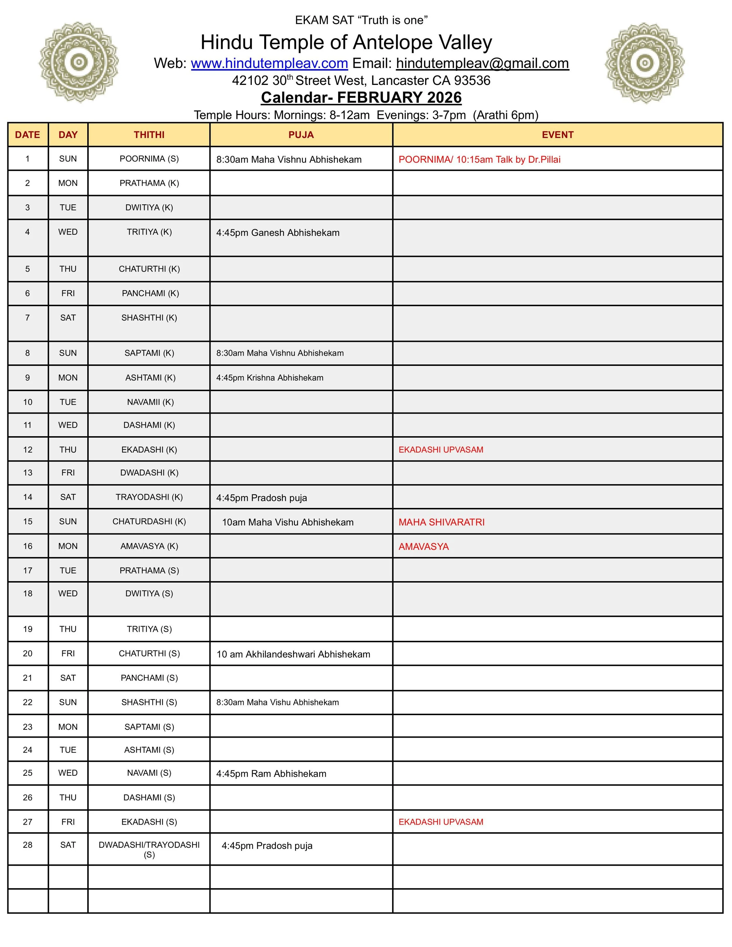 Pujas & Abhishek